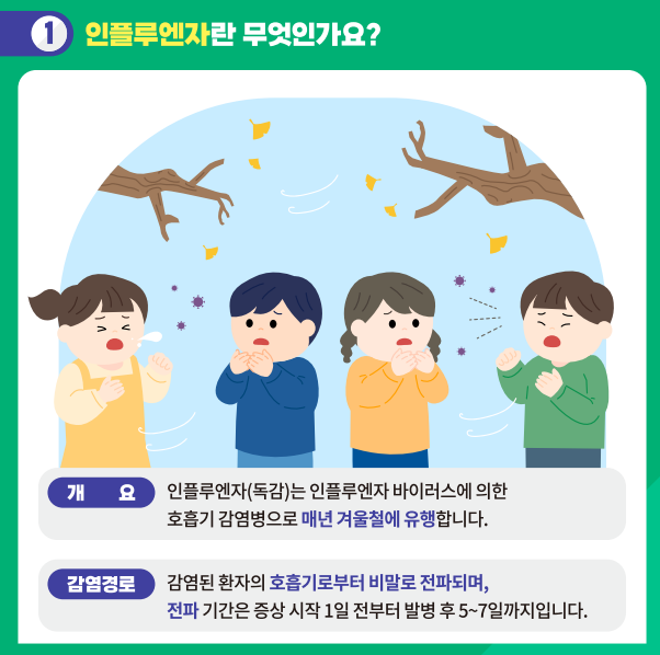 독감은 감기보다 증상이 심하고 전염성이 매우 강한 질병이다. 특히 면역력이 약한 어린이, 노인, 임산부는 합병증으로 폐렴이나 중이염까지 이어질 수 있다.
